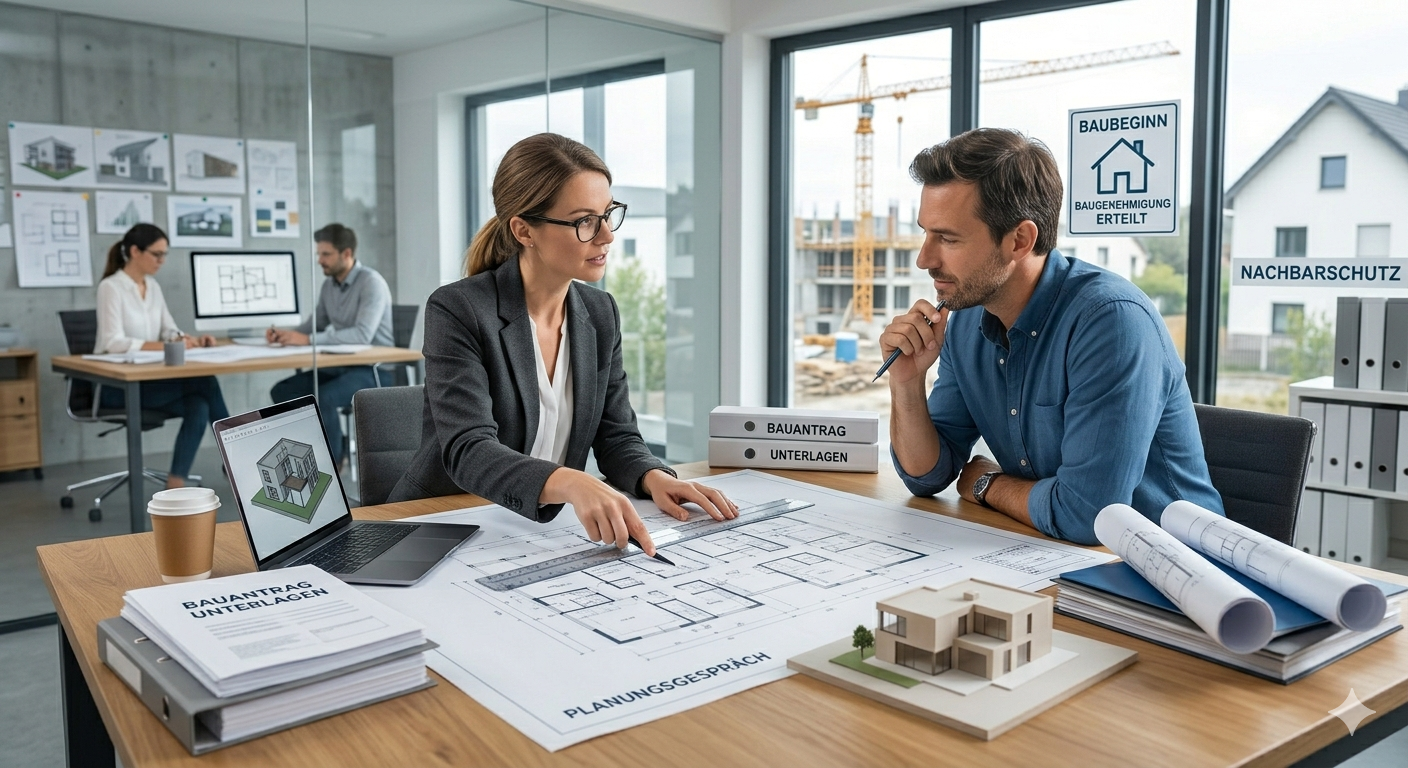 Ihr Fokus liegt auf Ausführung und Koordination. Wir übernehmen die Bauantragsbearbeitung strukturiert und ohne Aufwand für Ihr Team, als spezialisierter externer Partner mit klaren Abläufen.